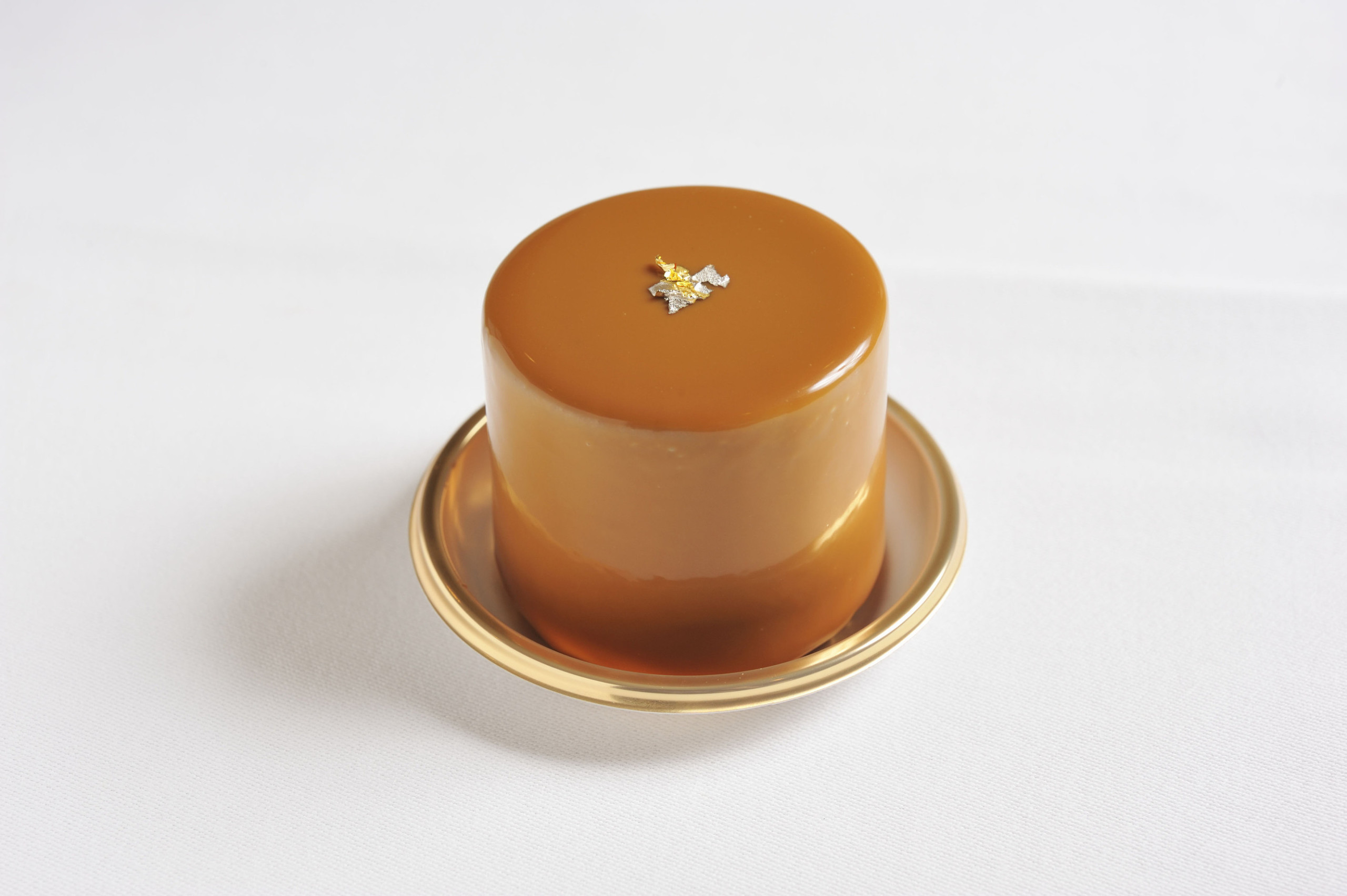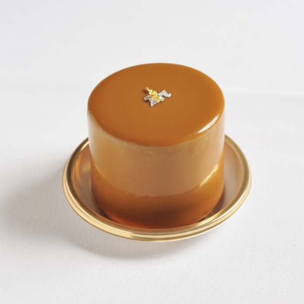 キャラメルコーティングされたミルクチョコレートムースの中にヘーゼルナッツクリームとオレンジのコンポートが入っており、甘さと苦味が絶妙な新定番スイーツなチョコレートケーキ。